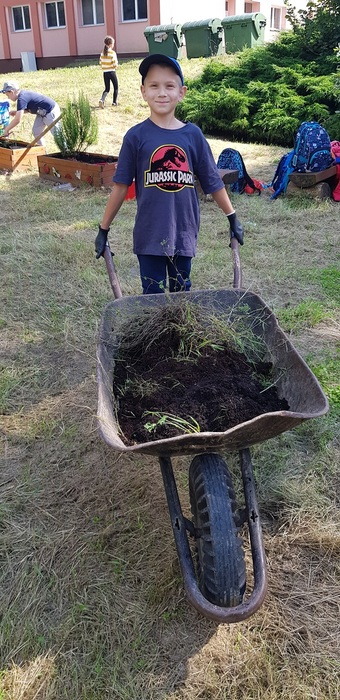 Hned první zářijové dny se děti s chutí pustily do práce na školní zahradě. Bylo potřeba ošetřit naše květníky, odstranit starou hlínu s plevelem a pořádně vše prokypřit. Nakonec si děti pro radost a barevný podzim zasadily vřes a chryzantémy. Své místo našli i „dubánci“. Poznáte, o jaký druh dubu se jedná? Děti si už také připravily nový a větší hmyzí domeček. Už ho jen naplní vhodným materiálem a broučkové a ostatní „hmyzáčci“ se mohou nastěhovat.