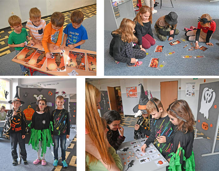 Děti 1. stupně si užily a zábavnou formou procvičily anglickou slovní zásobu týkající se Halloweenu. Ve strašidelně vyzdobené výstavní síni školy na ně čekala stanoviště s připravenými úkoly, pohybové aktivity i odměna za splněné úkoly.
