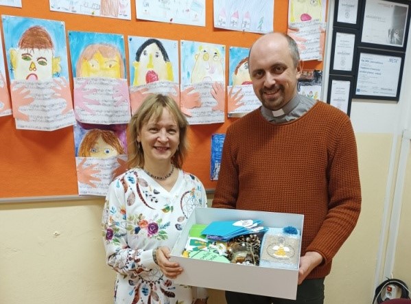 Vánoce jsou svátky, které chceme všichni trávit doma s rodinou. Některým pacientům v MNOF jejich zdravotní stav nedovolí, aby mohli být se svými nejbližšími. Proto se naše škola zapojila do spolupráce s městskou nemocnicí. Připravili jsme dárky pro dospělé i malé pacienty a předali je nemocničnímu kaplanovi, panu Mgr. Marku Žukowskému. Věříme, že nadílka z naší školy udělá velkým i malým pacientům radost.