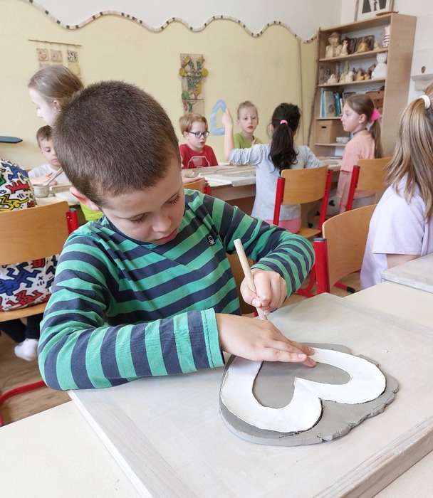 Dne 4. 4.2024 jsme s naší družinkou navštívili keramickou dílnu SVČ Korunka, kde již s předstihem děti měly možnost vytvořit dáreček pro svou maminku, babičku, tetu nebo pro kamarádku pod vedením velmi zkušené keramičky - vedoucí SVČ p. Leony Tešnarové.