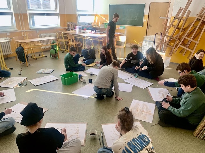 Čtvrteční den nám ve výtvarné učebně provoněl kávou a čajem. Žáci 7.B se seznámili s netradičním materiálem, který však nebyl k pití, ale malbě. Všichni si to náležitě užili.