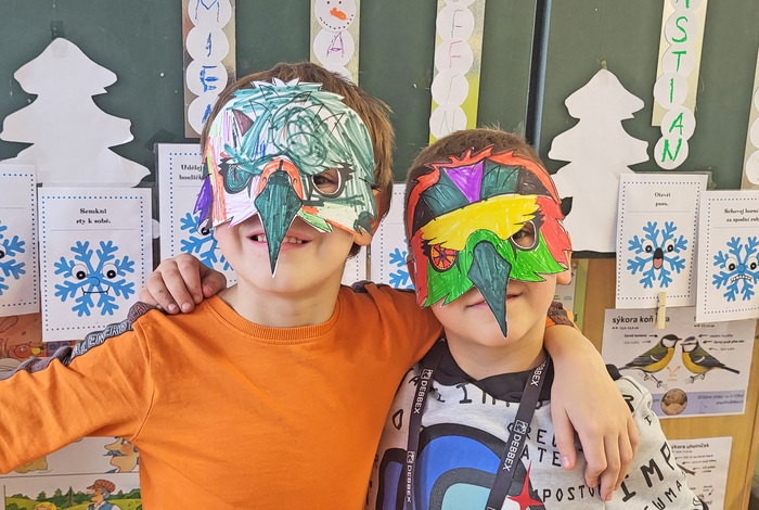 Po pravdě řečeno, hodinka nám na ptáčky a všechno kolem nich, rozhodně nestačila. Posuďte sami, nejprve jsme montovali ptačí krmítka, ty jsme pak rozvěsili v okolí školy a pravidelně do nich přisypáváme zrníčka. Ptáčky na krmítku jsme se naučili i poznávat, k tomu jsme hráli různé hry, vyrobili jsme si ptačí škrabošky a nakonec jsme připravili ptačí dobroty. I ty už visí na stromech, aby si na nich všechny sýkorky, vrabci, červenky... mohli pochutnat.