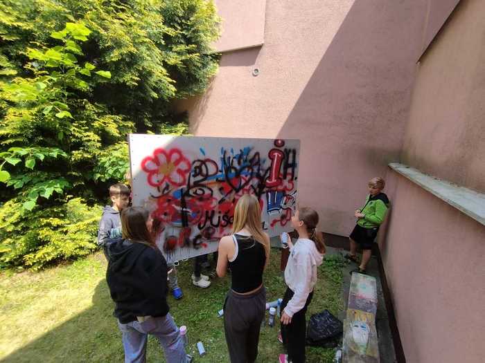 V pátek 26.5.2023 jsme se ve 14 hodin sešli, abychom společně postavili zeď, na kterou budeme moct kreslit a sprejovat. Na tento projekt jsme dostali peníze z magistrátu a je skvělé, že během přestávek můžeme trávit čas venku a bavit se sprejováním, kreslením a zároveň se potkáváme i s ostatními spolužáky. Po dokončení práce jsme na školní zahradě opekli párky, povídali si a užili si super páteční odpoledne.