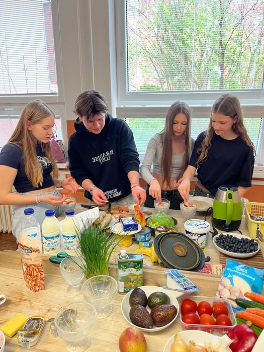 Pod vedením výživové poradkyně Mgr. Zuzany Švédové, DiS., se žáci zúčastnili celodenního workshopu, kde si nejdříve osvojili základy zdravého stravování a následně se pustili do vlastní přípravy svačin. Vznikl tak například výborný chia pudink s ovocem, plněné tortilly, raw sušenky nebo tvarohová pomazánka s jablkem a skořicí.