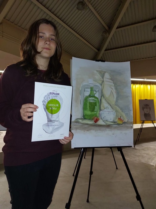 Úžasné 1. místo za malbu zátiší získala Karolína Záchová z 8. A.