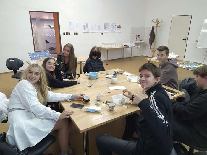 Ve středu 13. 10. jsme se zúčastnili keramického workshopu na střední umělecké škole v Ostravě, Poděbradova 33. Společně jsme si polepili keramické hrníčky barevnými fóliemi, které nám ve škole vypálili v peci. Zkusili jsme si také v ateliérech vytočit na kruhu misky a nádoby, se kterými nám pomáhali studenti SUŠ Ostrava. Nakonec nás studenti provedli chodbami školy a ukázali nám své klauzurní práce, na kterých pracovali soustavně tři měsíce.
